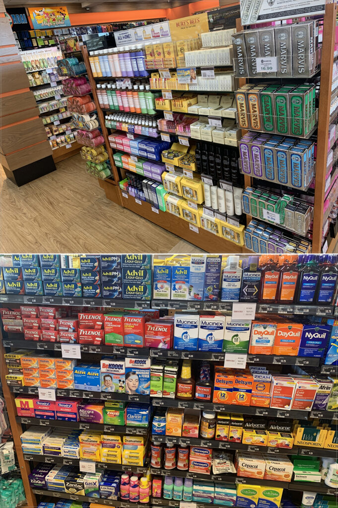 This section features Burt’s Bees, toothpaste, Dr. Bronner’s, and various medications.