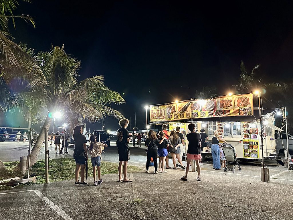 각 트럭에서 맛있는 냄새가 풍깁니다. 괌 사람들의 소울 푸드인 바비큐는 물론 등장합니다. 그 외에도 다양한 요리가 있지만, 바비큐 트럭 주변에는 항상 사람들이 모여 있습니다.