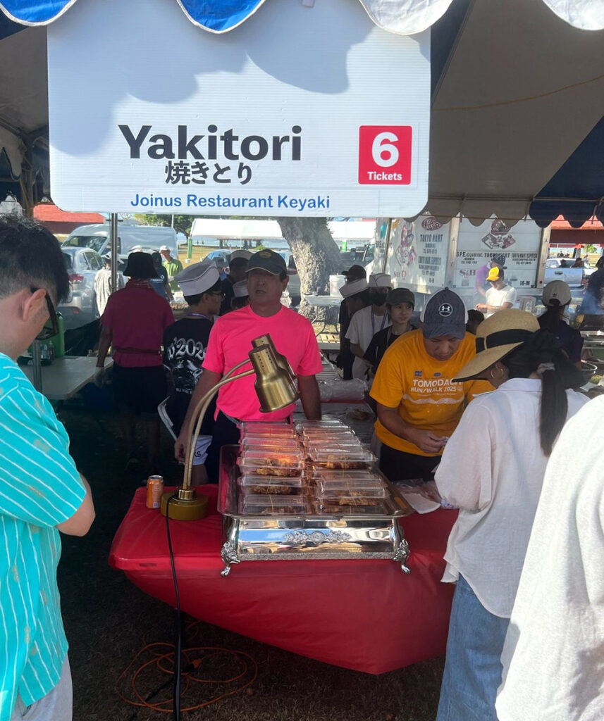해외에서도 “야키토리”로 알려진 닭꼬치 부스에도 긴 줄이 늘어서 있었습니다. 한 손으로 간편하게 즐길 수 있는 야키토리는 축제장을 거닐며 맛보기에 완벽한 “길거리 음식”의 대표적인 예입니다. 이는 축제 특유의 신나는 분위기를 더욱 고조시켜 줍니다.