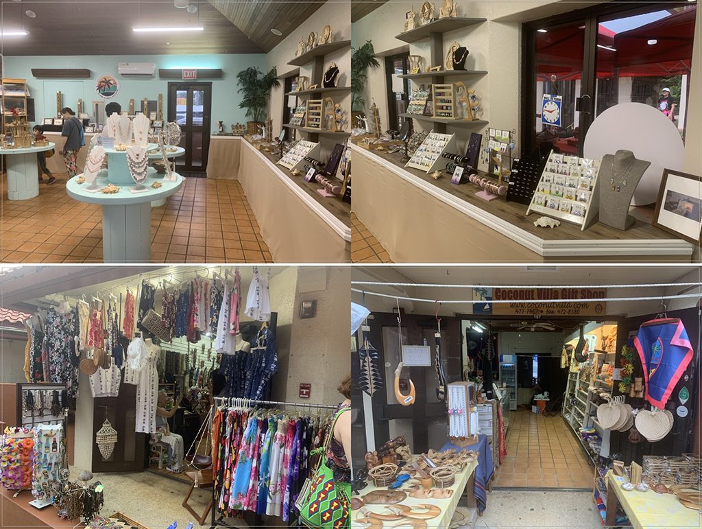 괌 로고가 새겨진 티셔츠와 하와이안 스타일 셔츠, 원피스 매장도 있어요.