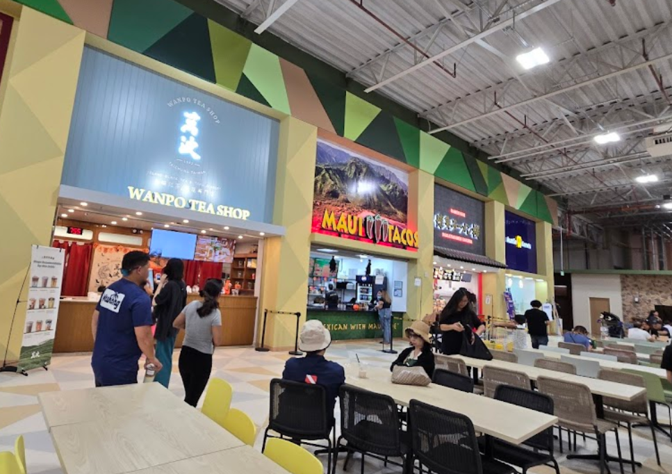 占地三千多坪的賣場另外還有規畫美食街,還有台灣人熟悉的手搖飲店「萬波」,吃喝都不是問題。