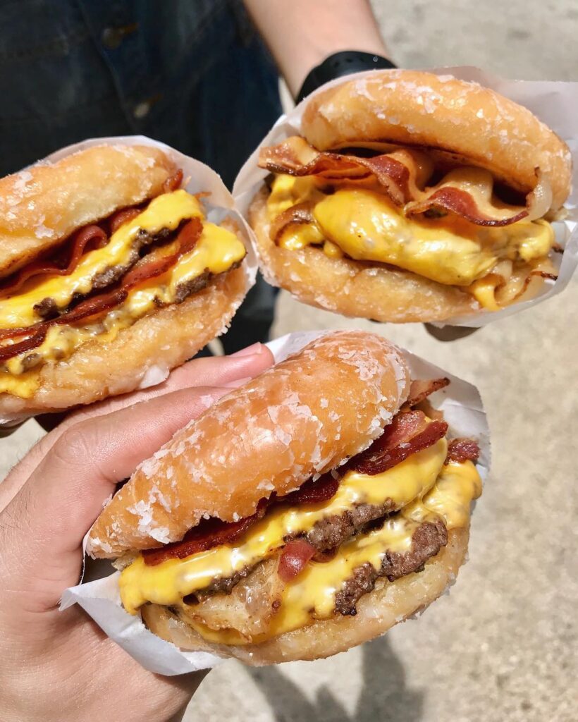 一個$8元美金的小豬堡(Piggy Smalls ),很罕見的用類似甜甜圈的麵包,鬆軟且濃濃麵包香,包夾加倍的培根與起司,口感豐富而不厚重。