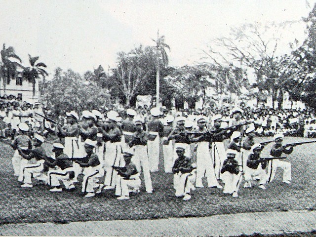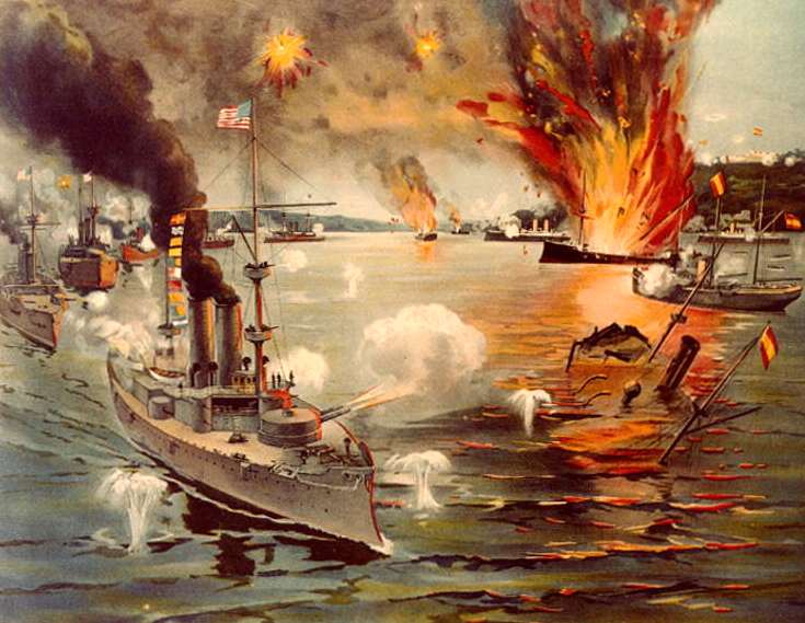 西元1898年4月美國聲稱軍艦Maine號在Mavana港被擊沉而像西班牙宣戰,雙方於菲律賓爆發戰爭,直至同年8月,西班牙同意簽屬巴黎條約,以兩千萬美元代價得到關島、菲律賓以及西班牙在西印度等的屬地。
