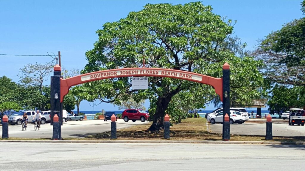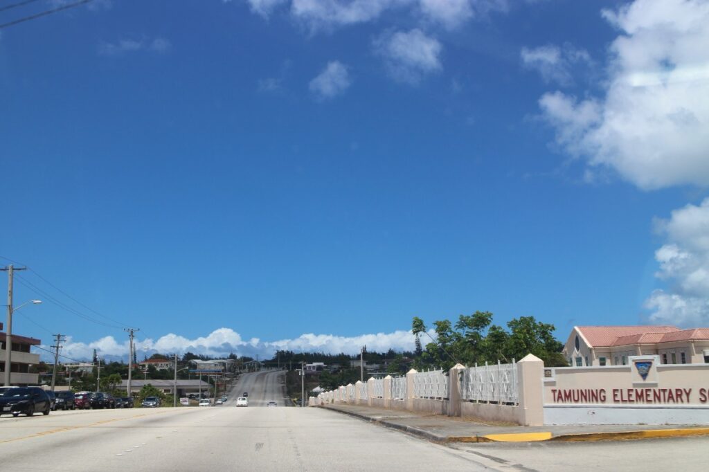 吃飽了還有點時間就先到門口閒晃順便等待租車公司的人員來接我們。關島的天氣太好了,以藍天為背景拍甚麼都好看。